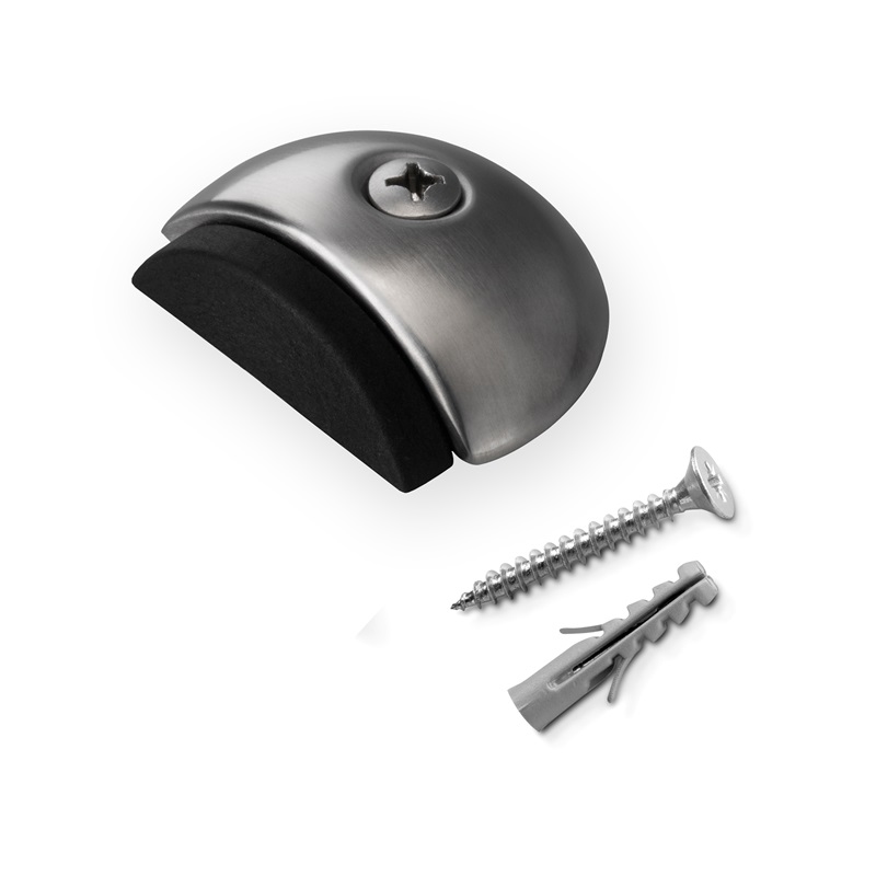 Amb una broca de 4 mm de diàmetre, fer un forat a terra, col·loquem el topall amb el centrador dins del forat i alineem el topall amb la porta, de manera que la peça de goma entri en contacte i alineada amb la porta.