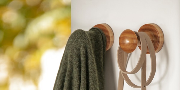 Penjador de fusta de pi amb un pom. Producte amb certificació PEFC.