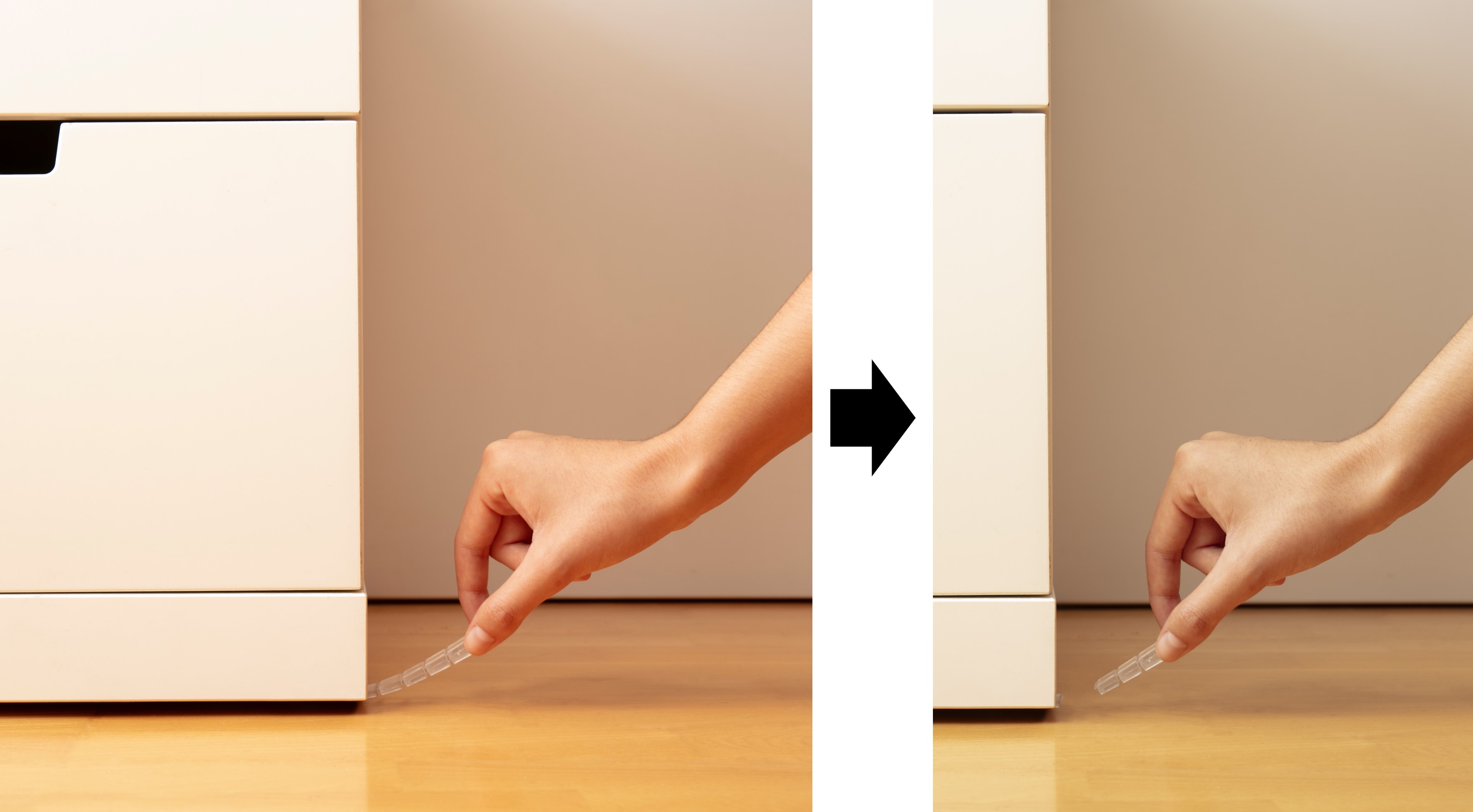 Place the wedge in the area where the unevenness is between the floor and the furniture.