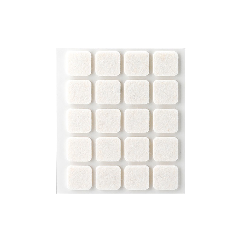 Die-cut adhesive wool felt, 20 pieces, 3 x 17 x 17 mm. Suitable for protecting the floor from possible scratches or scuffs, also silencing the noise when moving or dragging furniture.