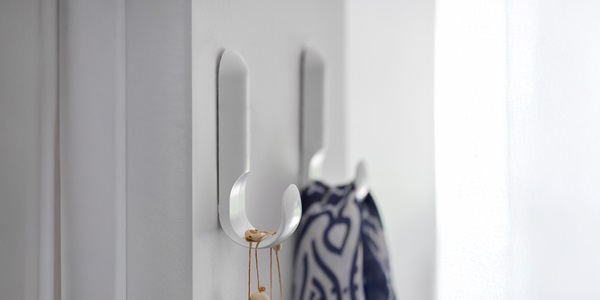 Drill and place the fixing plugs, screw the hook in and place back the cover.