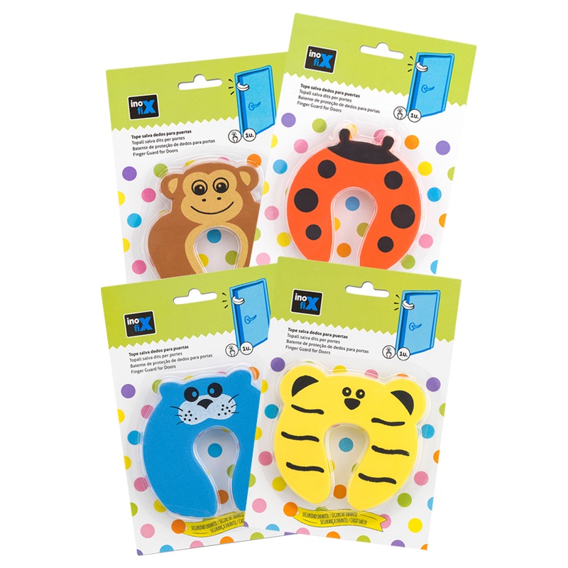 Soft stopper that prevents doors from slamming and children getting their fingers caught. Decorated with animal figures and bright colours.