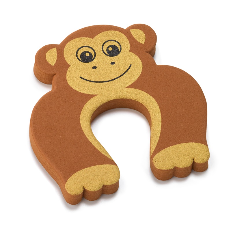Soft stopper that prevents doors from slamming and children getting their fingers caught. Decorated with animal figures and bright colours.