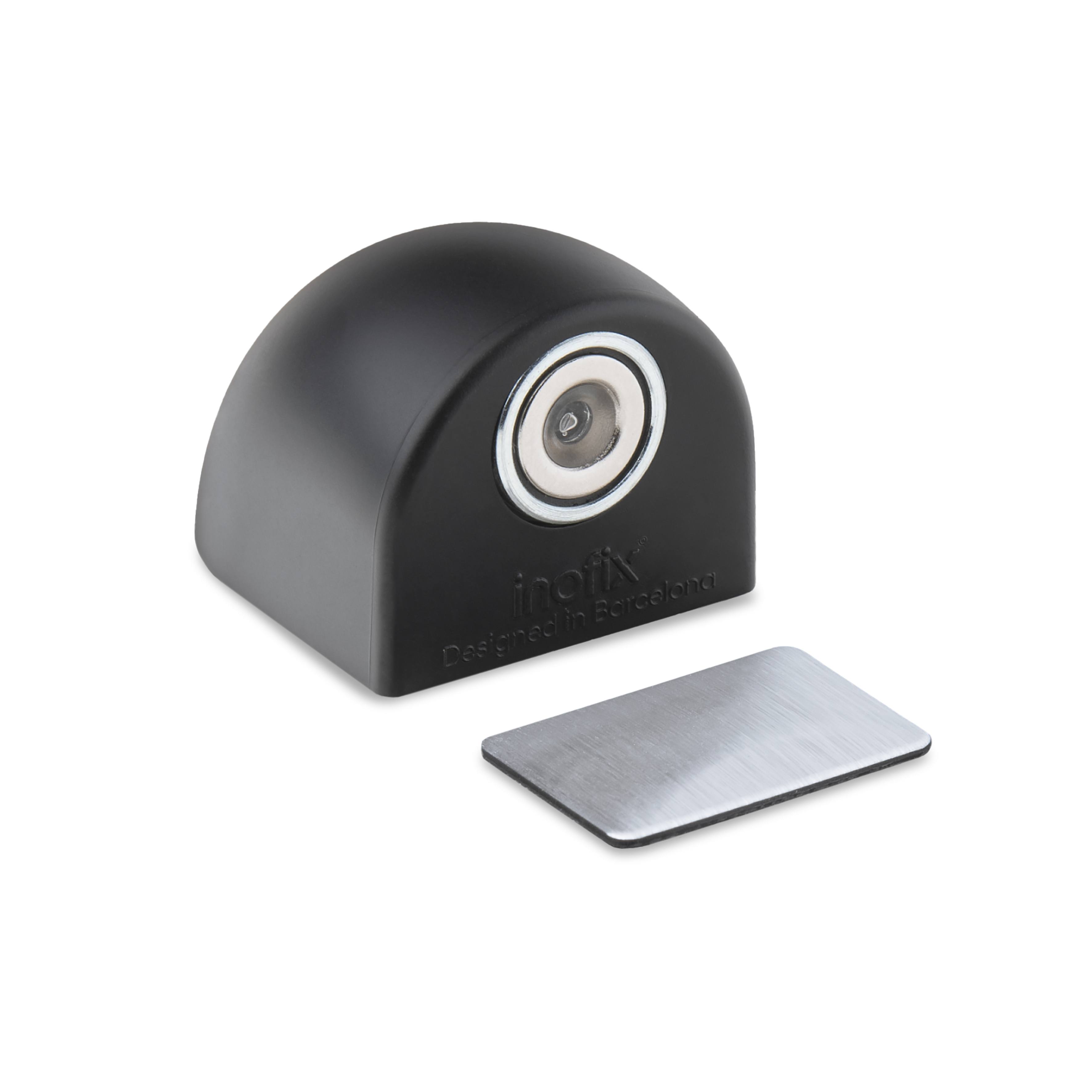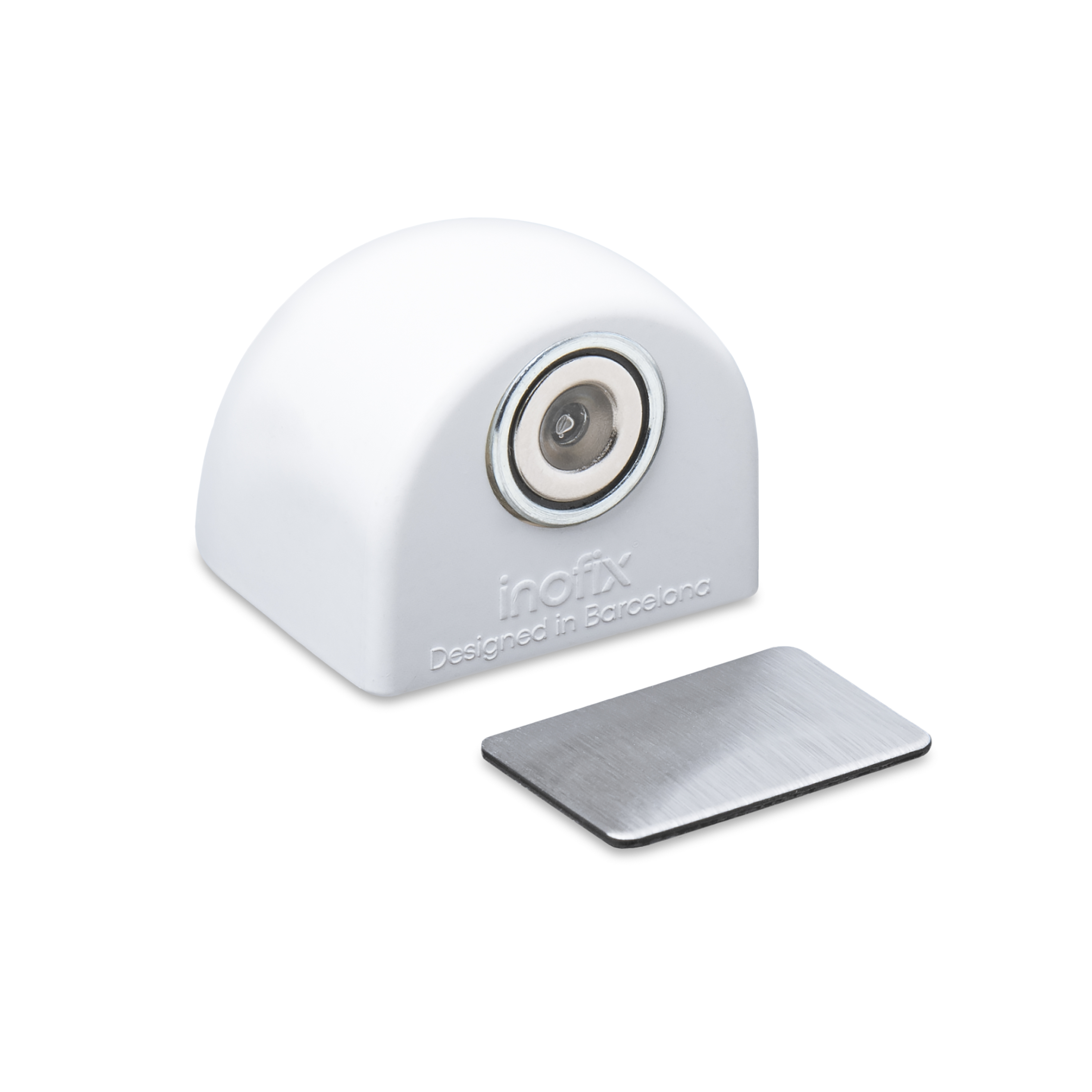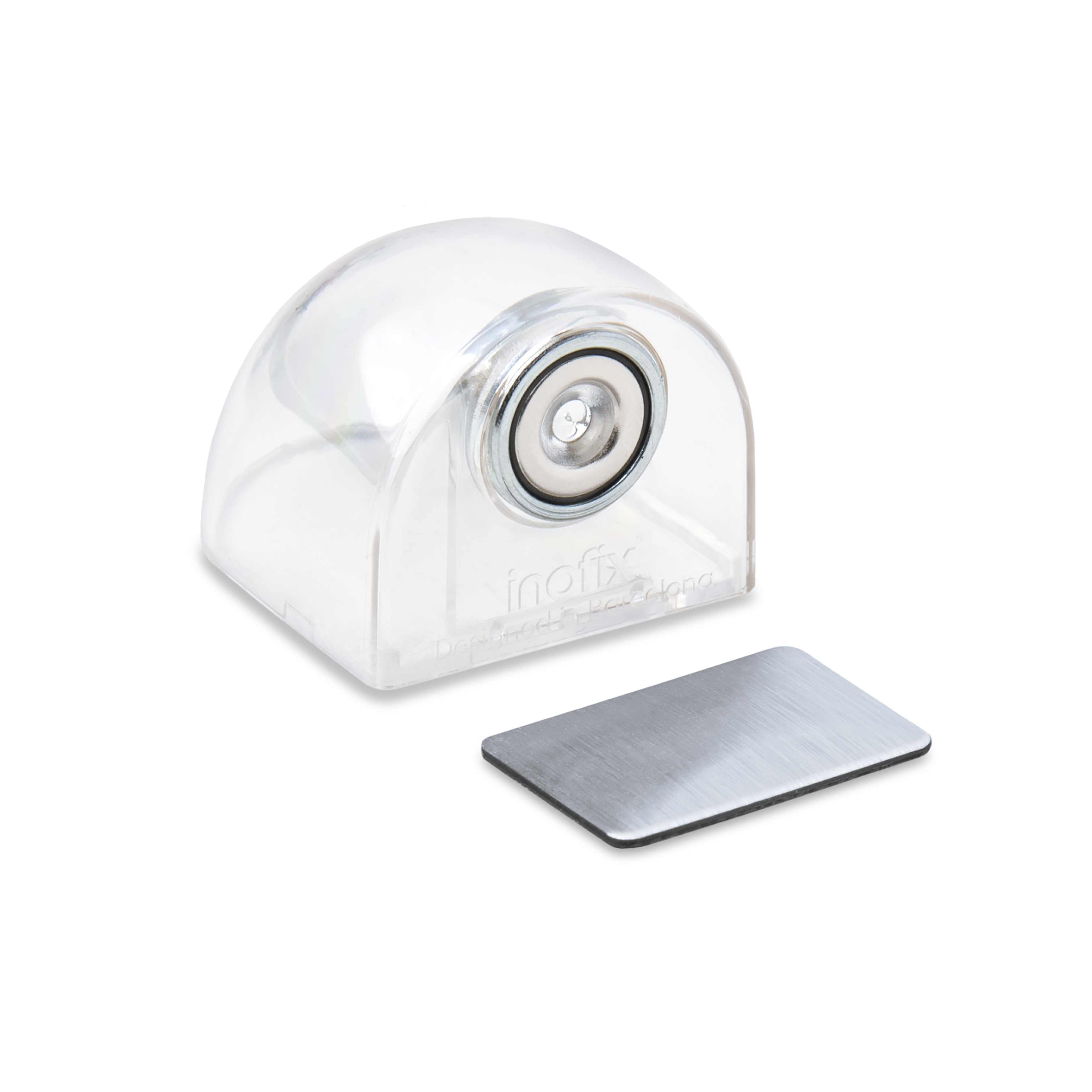 Imán de neodimio, mucho más potente que los imanes convencionales. Más alto que otros retenedores para aquellas puertas que no quedan totalmente a ras de suelo.El diseño está optimizado para que el modelo transparente sea lo más discreto posible, con adhesivo transparente. Además la propia geometria de la carcasa disimula el imán. El imán tiene cierto movimiento, de forma que el imán se adapta a la placa metálica de la puerta, en caso que el suelo no sea perfectamente plano.