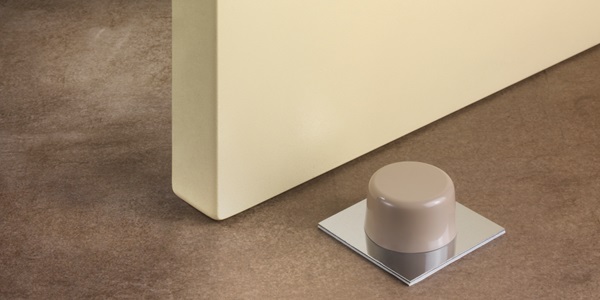 Tope de puerta adhesivo con base metálica.