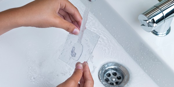 Con el paso del tiempo la base adherente puede perder adherencia. Para recuperar sus propiedades auto adherentes, lávela con agua y séquela al aire o con un secador. Nunca con un paño.