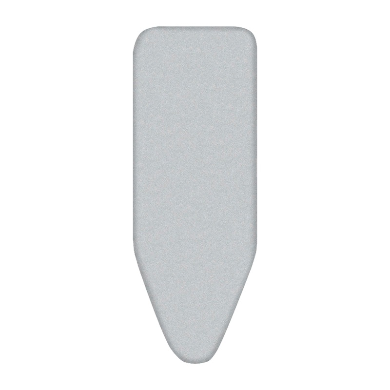 Funda METAL de 130 x 48 cm hecha con tejido 100% algodón tratado con polvo de aluminio que facilita el planchado repartiendo el calor de manera uniforme, evitando así que el calor quede concentrado en un solo punto. Incorpora muletón acolchado, ideal para evitar que las marcas de la malla de la tabla de planchar se noten en la ropa recién planchada. Se fija muy fácil y cómodamente gracias a su sistema de fijación con cordoncillos y clip. Funda para tabla de planchar de 125 x 40 cm.