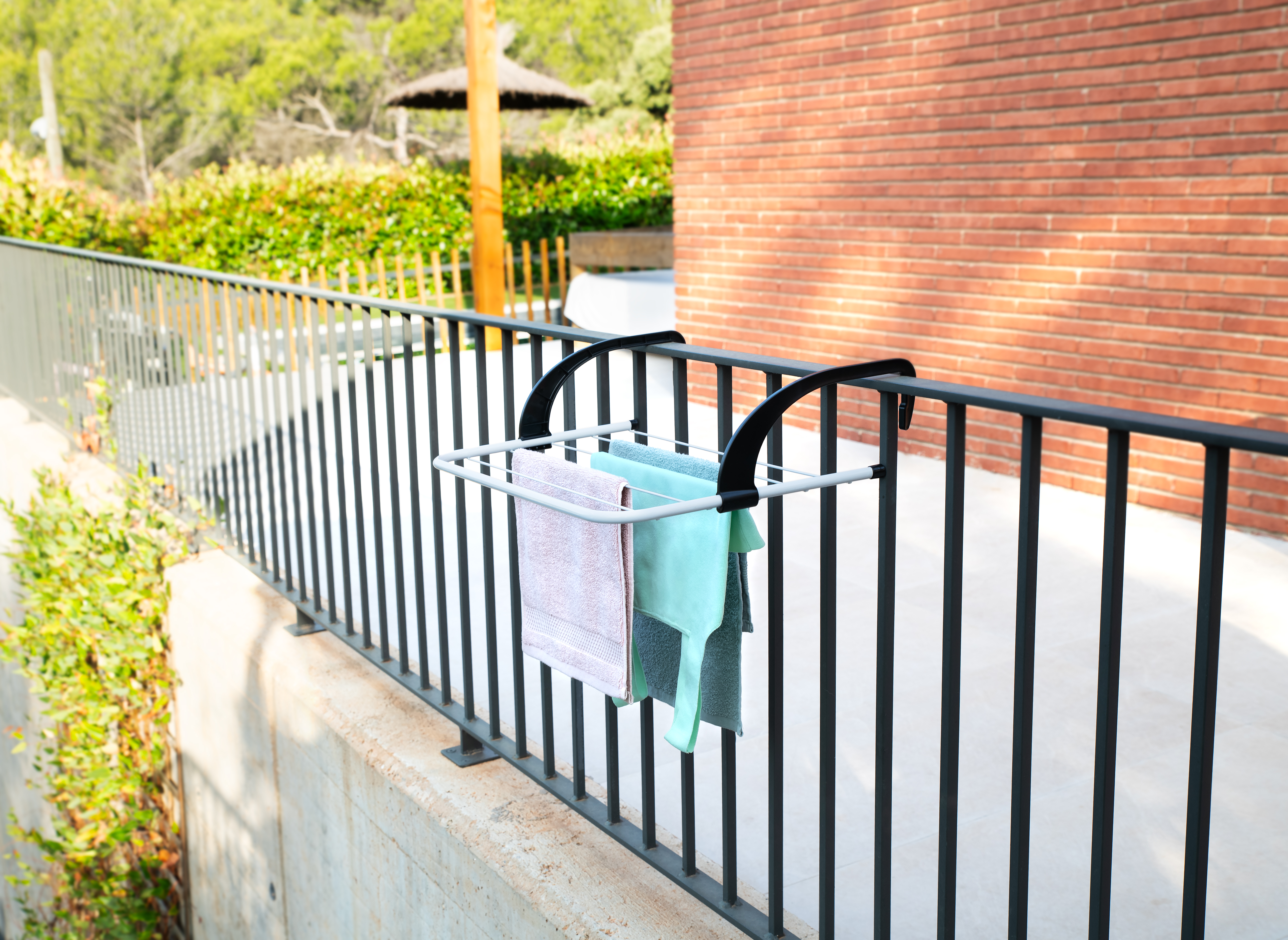 Tendedero de balcón o radiador. El más pequeño de la colección, apto también para usar en caravanas. Tiene una capacidad de tendido máxima de 2,5 metros.