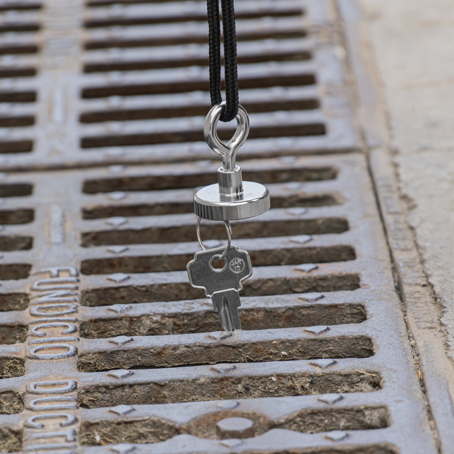 Enhebrar cuerdas, lonas u otros elementos colgantes de gran peso, fijándolas a una superficie metálica. Ideal para poder recuperar objetos metálicos en lugares de dificil acceso, utilizando una cuerda atada al ojal.