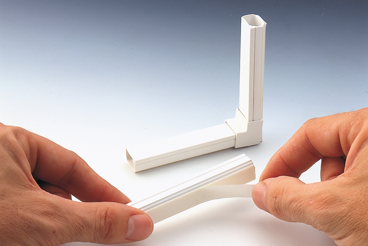 En caso de ser adhesiva, retirar el papel adhesivo y presionar para que la canaleta quede bien pegada.