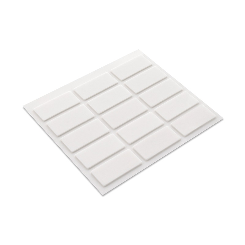 Retirar el papel protector de la plaquita de cinta, pegarla al objeto y a la superficie.