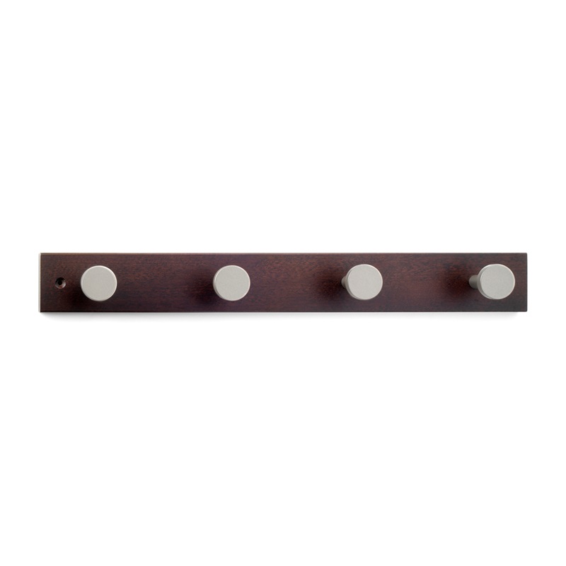 Colgador múltiple de madera de haya con cuatro pomos de metal.