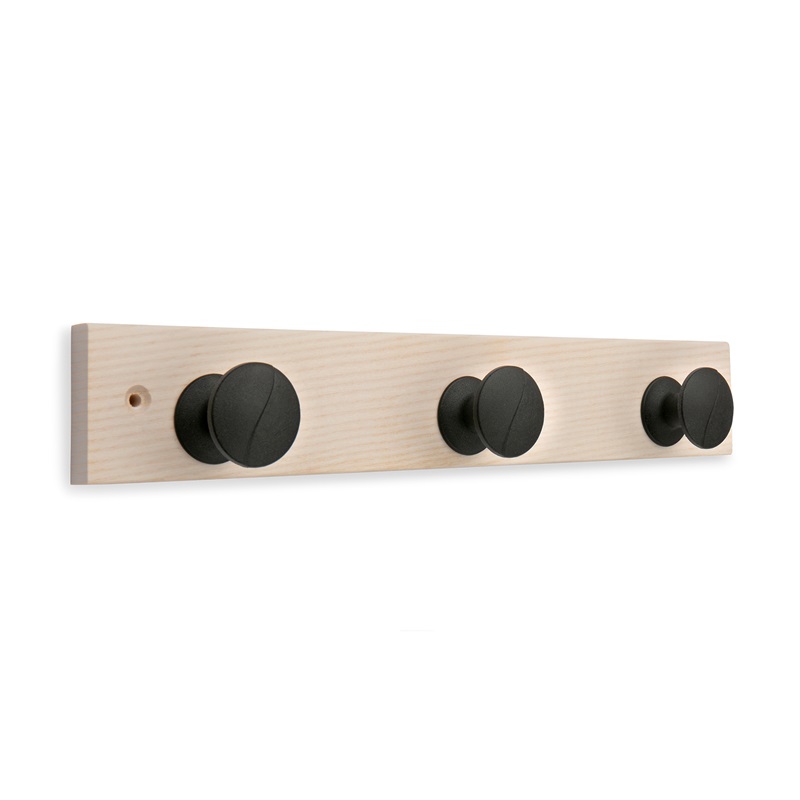 Colgador múltiple ONA con base de madera y 3 pomos de metal.