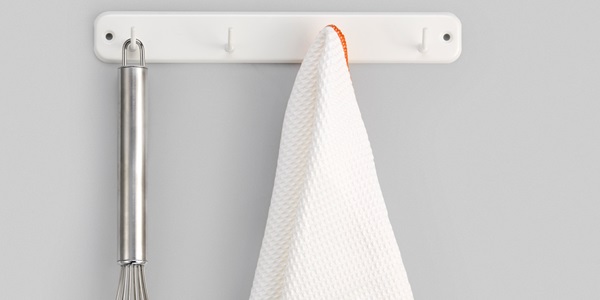 Ideal para la organización de pequeños objetos, paños de cocina, toallas, etc. en cocinas u otros espacios de trabajo. Fijación con tornillos incluidos.